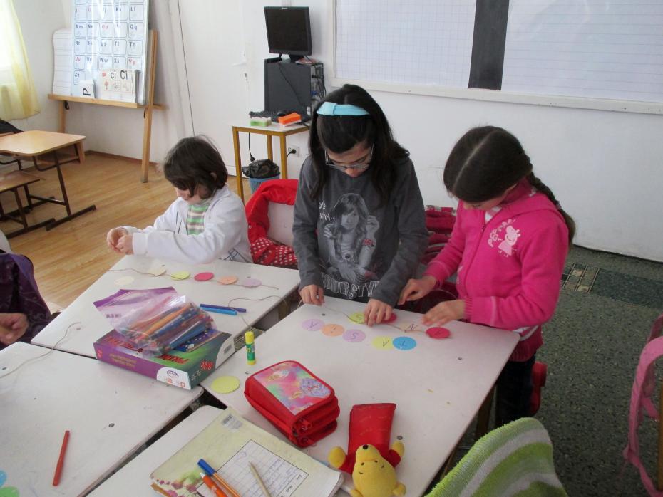 Ne-am întors astăzi la şcoala din Schitu-Duca, unde ne-am întâlnit cu copiii de la grădiniţă, clasa pregătitoare şi clasa a III-a. Dintre cei mai mari, fiecare a realizat câte un banner cu numele propriu, iar cei mici au lucrat la 2 bannere cu fluturi care vor decora sala de clasă.